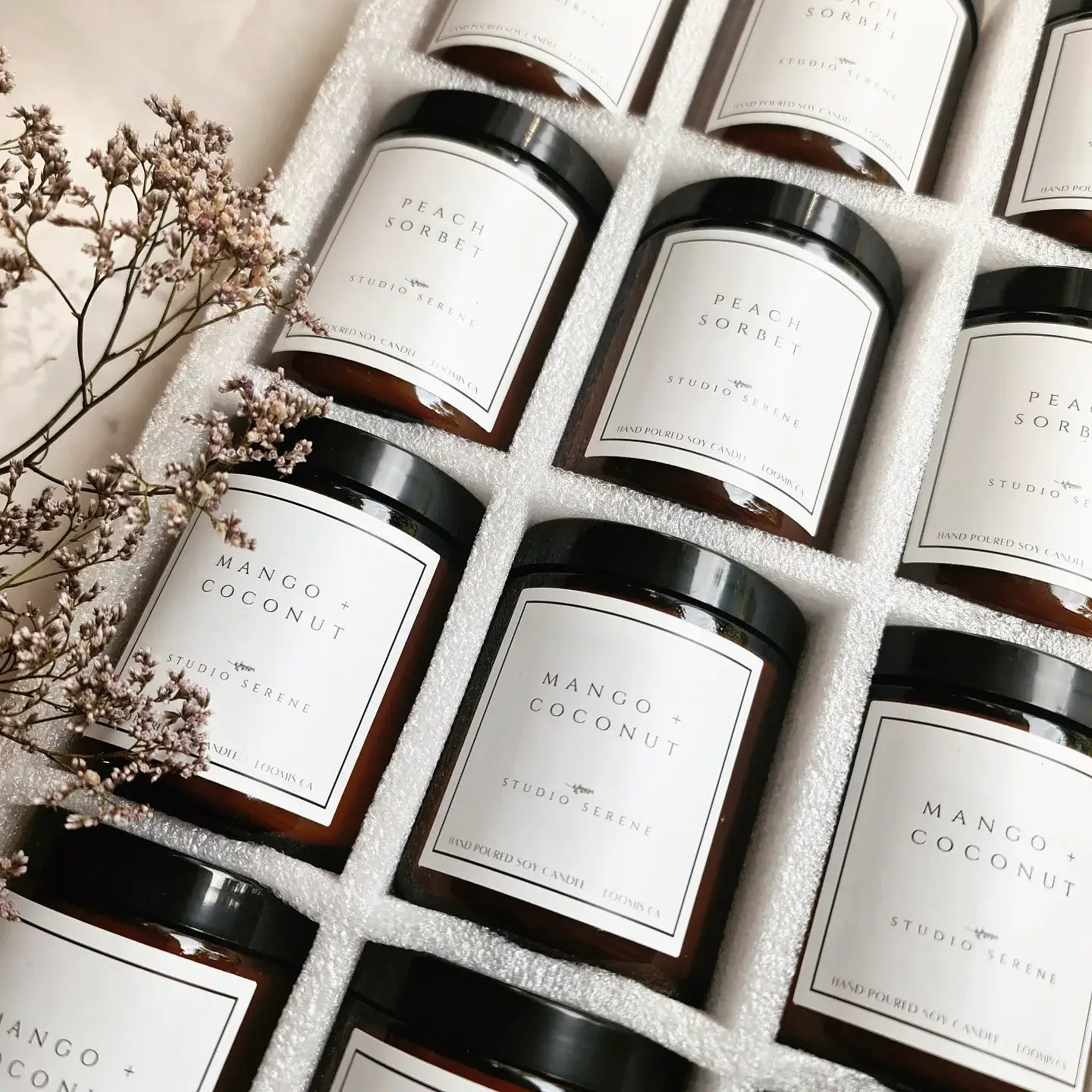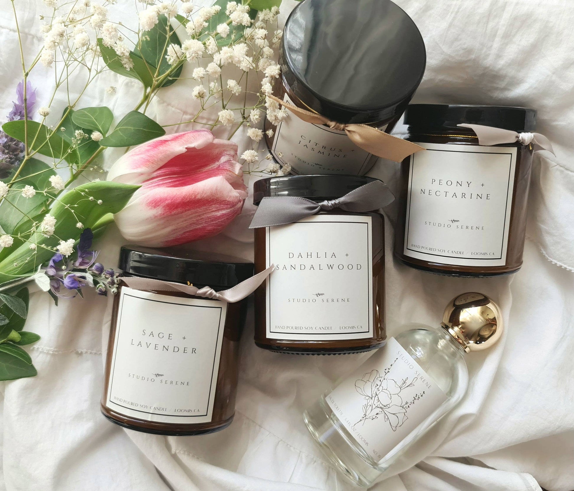 Soy wax candle made with soybeans grown in the US and clean fragrance oils free from phthalates and carcinogen. - Bow accents not included -All my candles are hand poured in Loomis CA -100% natural soy wax made with soy beans in the USA -zinc and lead free cotton wicks -High quality fragrance oils free from carcinogens, reproductive toxins, and other potentially hazardous chemicals -Zinc and lead free cotton wicks Diameter: 2.88 in Height: 3.5 in 8 fl oz Burn time: 45+ hours